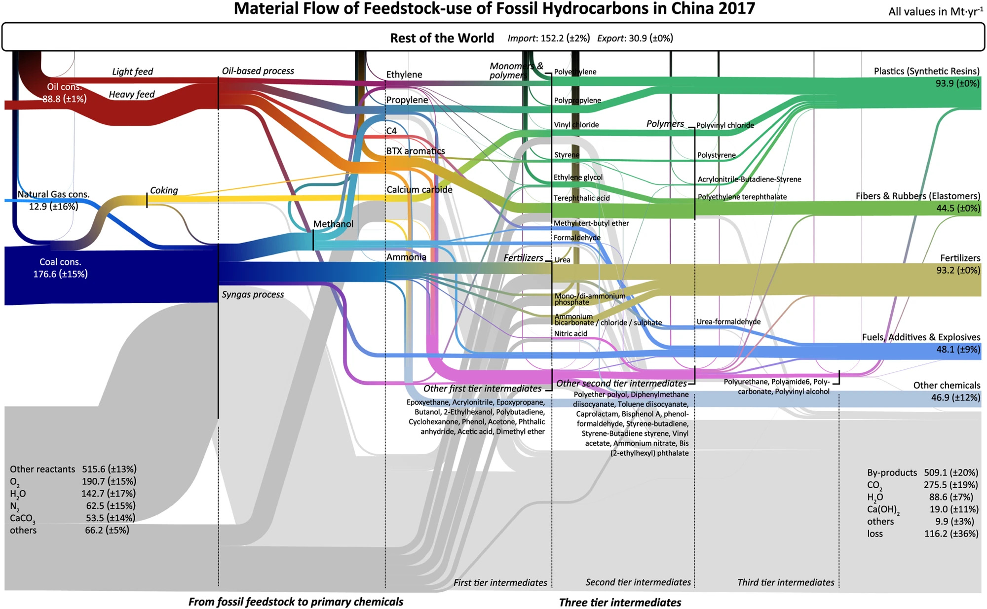 Jiang, M., Cao, Y., Liu, C., Chen, D., Zhou, W., Wen, Q., ... & Zhu, B. (2024). Tracing fossil-based plastics, chemicals and fertilizers production in China. Nature Communications, 15(1), 3854.